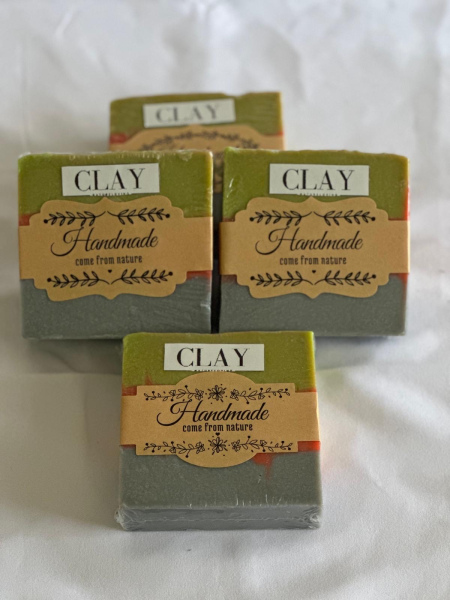 Olive oil, Coconut oil, Shea butter, Castor oil, Distilled watert, Sodium Hydroxide, Kaolin Clay, Vitamin E oil, Essential oil.