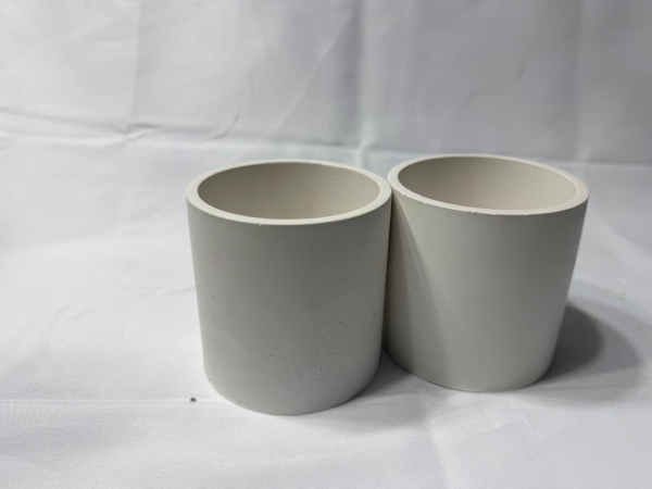 Cement vase cotted with water based acrylic gloss varnish