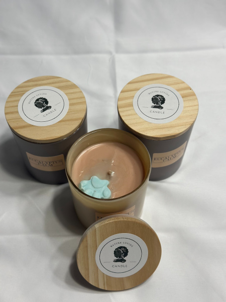 Eucalyptus Calm, Eucalyptus , Rose petal scented, candle made with soy wax