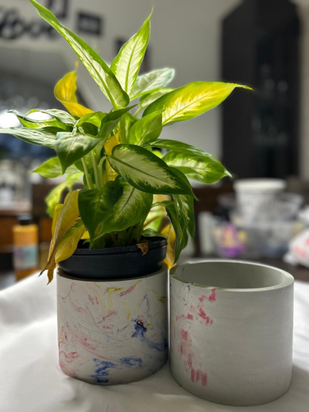 Large Concrete Vase, colored with acrylic water based paint.
