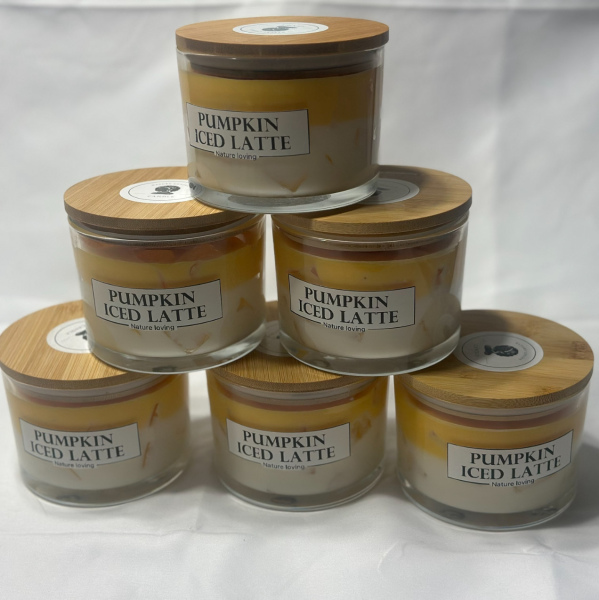 pumpkin Iced Latte: Pumpkin Spice scented, candle made with soy wax, Jelly wax
